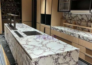 鸿海石英石厨房台面墙面应用