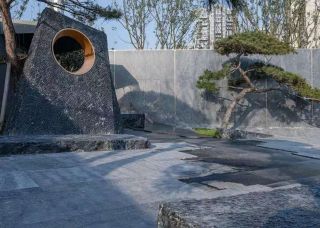 黑山石水钵,置石,售楼部造景