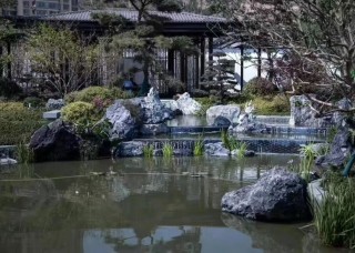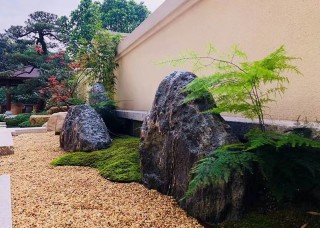 黑山石造景庭院假山流水效果