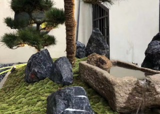 黑山石置石黑山石景观石应用,中式园林景观,