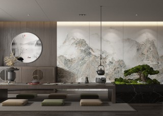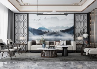 唐驰岩板定制 新中式背景墙装修