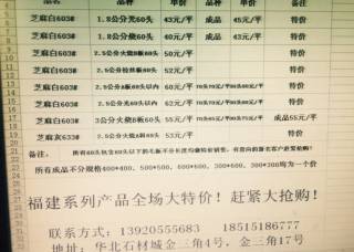 湖北芝麻白,山东锈石,福建603#