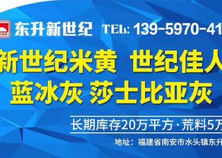 东升新三厂主营产品:新世纪米黄3,新世纪1,新世纪(白底),新世纪米黄2,新世纪米黄1,新世纪米黄,新世纪米黄4,新世纪米黄5,新世纪,世纪佳人,新世纪(土耳其),新世纪西米花,莎士比亚灰,蓝冰灰企业地址:福建南安水头镇东升大理石新厂(东升石材超市隔壁)