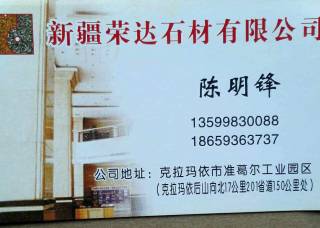 新疆荣达石材有限公司主营产品:钻石金麻,棕钻,新疆菊花黄2,新疆菊花黄,菊花黄2,菊花黄1,新菊花黄,新疆红,新疆红(新疆矿),菊花黄,翡翠绿(荔枝面),翡翠绿(火烧面)企业地址:新疆克拉玛依新疆克拉玛依市后山石材开发区