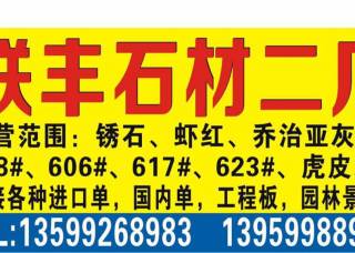 联丰石材二厂主营产品:G681,锈石,G606(副矿),漳浦红G648,漳浦虾红,黄锈石,古典灰麻,港尾锈石(荔枝面),港尾锈石(光面),漳浦锈(荔枝面),漳浦锈(火烧面),黄金钻1,芝麻白G623,白麻企业地址:福建南安石井镇联丰埭头高速桥旁。