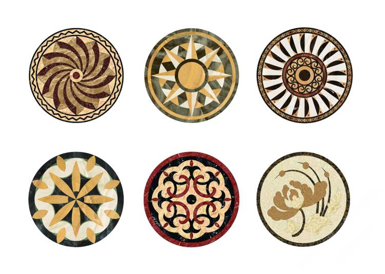 描述:石材水刀拼花是目前市场上最常见的水刀拼花,是利用水刀将各种颜色的石材切割成需要的造型,再用胶水拼接而成。大理石,花岗岩,玉石和人造石都是很好的材料选择。现阶段石材拼花主要应用在星级酒店,大型商场,别墅,家装的客厅,餐厅和玄关,是目前石材装饰中效果最好最为绚丽高贵的装饰产品。