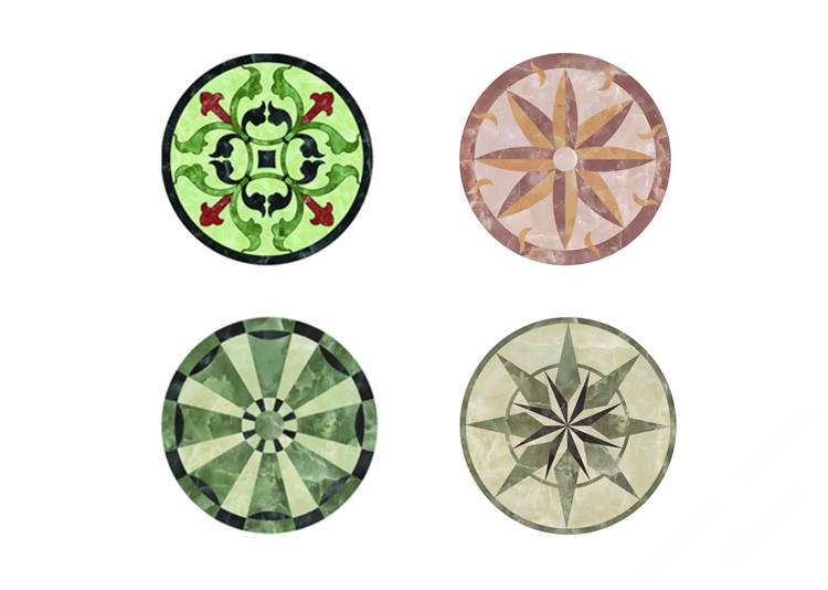 描述:石材水刀拼花是目前市场上最常见的水刀拼花,是利用水刀将各种颜色的石材切割成需要的造型,再用胶水拼接而成。现阶段石材拼花主要应用在星级酒店,大型商场,别墅,家装的客厅,餐厅和玄关,是目前石材装饰中效果最好最为绚丽高贵的装饰产品。